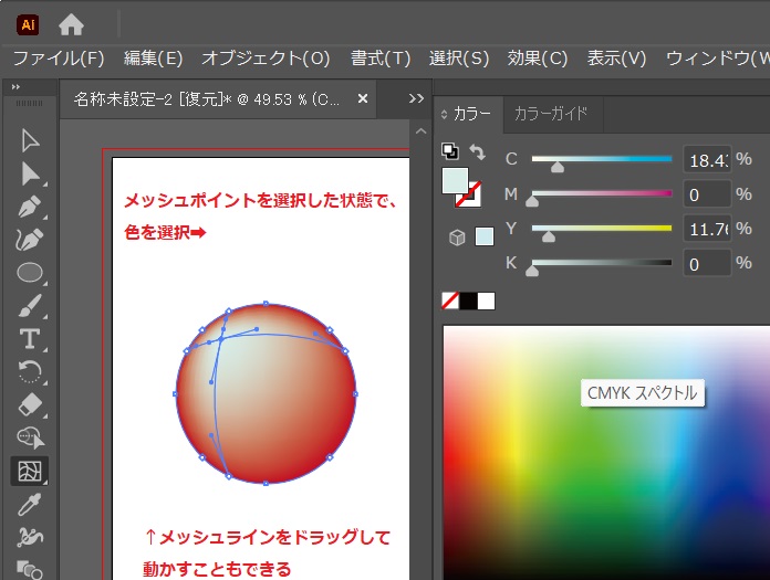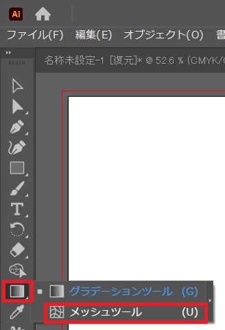 グラデーションツールを長押しし、メッシュツールを選択する。
