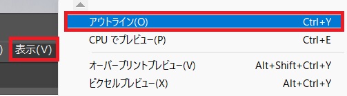 メニューバーの「表示」⇒「アウトライン」で、色なしの線画の状態になります。