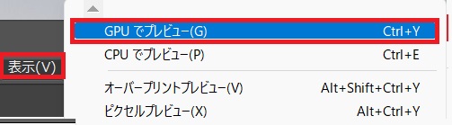 メニューバーの「表示」⇒「GPUでプレビュー」で、色がついている状態に戻ります。