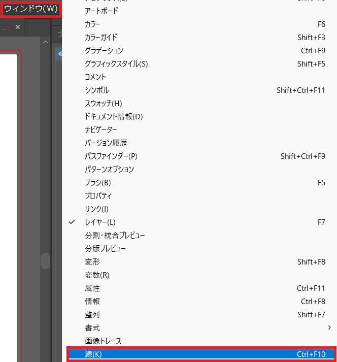 メニューバーの「ウィンドウ」から「線」を選択する。