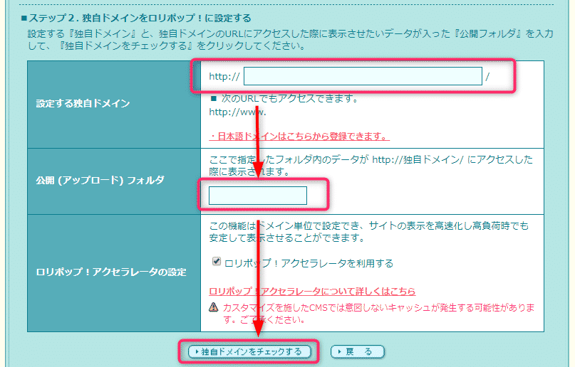 「独自ドメインをチェックする」を押す。